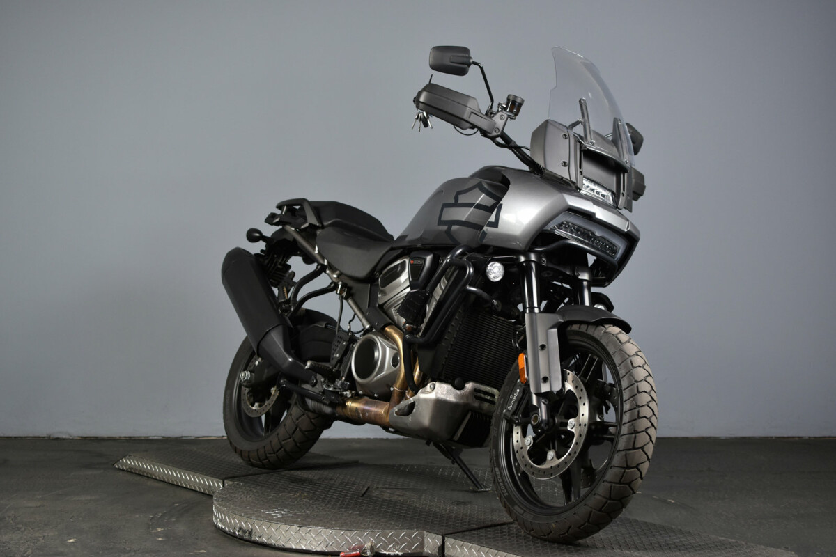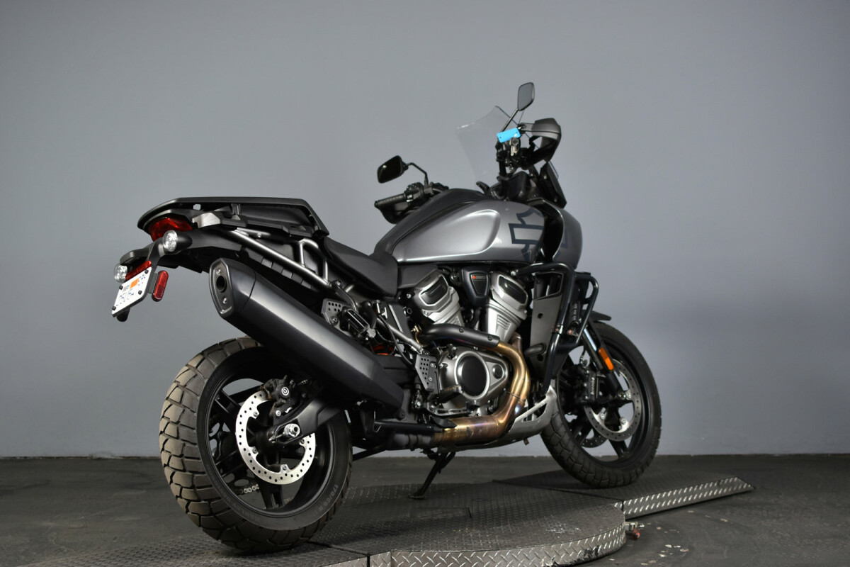 This 2022 Dealer Certified RA1250S Pan America Special, finished in Gauntlet Gray Metallic, has less than 2,000 miles on the odometer and comes with the Manufacturer's Warranty active until May 2024. In addition, it includes a One-Year, unlimited-mile Powertrain Warranty and special financing options. Designed as a 2-wheel multi-tool built to endure, the Pan America is engineered for exploration across asphalt, gravel, or dirt—wherever your adventure takes you. Lace up your boots and get ready, because this bike is powered by Harley-Davidson’s newly designed, liquid-cooled Revolution Max 1250cc engine, which delivers an impressive 150 horsepower and 94 ft/lbs of torque straight from the showroom floor. The Revolution Max engine also serves as part of the bike's structural frame, eliminating the need for a traditional frame and contributing to a lighter, more nimble ride.